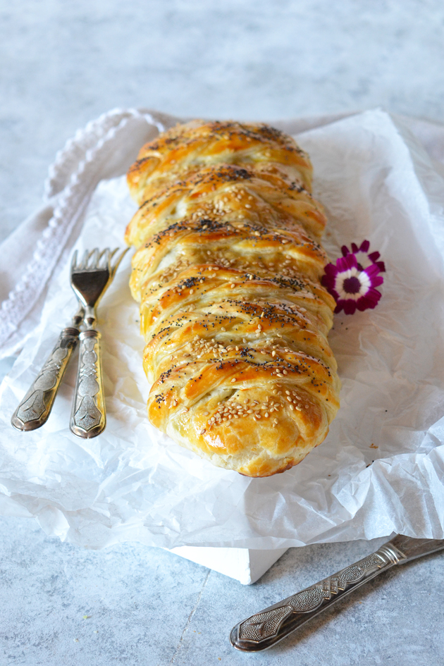 Per fare questo strudel salato mi sono ispirata ad un tipico contorno della città in cui vivo. A pasqua infatti l’agnello viene accompagnato da una teglia di patate, carciofi e piselli cotti al forno. Racchiuse in una croccante sfoglia queste verdure diventano ancora più squisite.