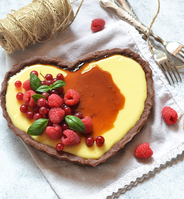 Questa crostata l’ho realizzata lo scorso autunno per una collaborazione con l’azienda cameo. Ritengo che rappresenti un asso nella manica quando si ha a disposizione poco tempo ma si vuole realizzare un dolce d’effetto. Vi basterà preparare la frolla al cacao e poi realizzare la crema per il ripieno con il preparato per crem caramel, un po’ di frutti rossi per decorare e il gioco è fatto!