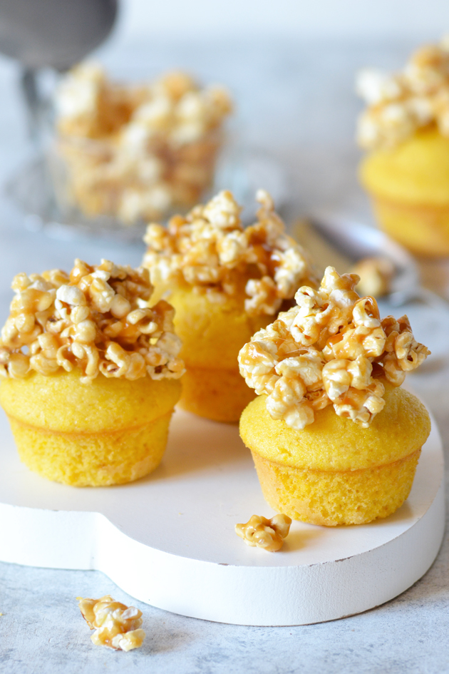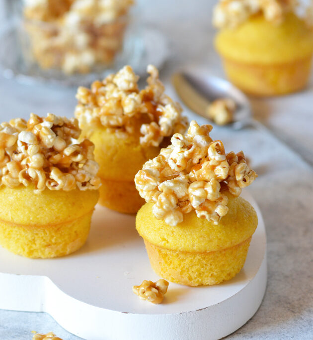 Questi muffin diventeranno una vera droga per voi, ne sono più che sicura perché io stessa li ho trovati stratosferici, delle morbidissime tartine profumate al limone, con farina di mais, sormontate da una montagnetta di popcorn caramellati. Il dolce ideale per le feste dei bimbi, ma anche per rendere una festa anche una qualsiasi merenda pomeridiana.