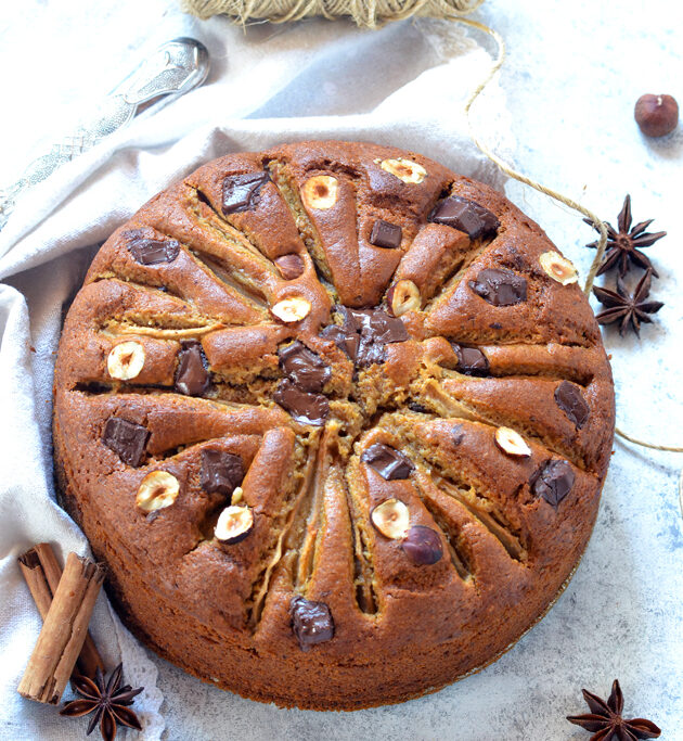 Questo dolce mi ricorda tanto un profumo che usavo da ragazza, alla pera e cannella, un profumo molto dolce e sensuale. Partendo da questo ricordo ho creato, quella che, a detta del mio vicino di casa, è uno dei dolci più buoni di sempre, estremamente morbido e aromatico. Un viaggio attraverso le meraviglie del mio adorato autunno. Una torta semplice e genuina, senza burro, senza latte, che non smettereste mai di affettare.