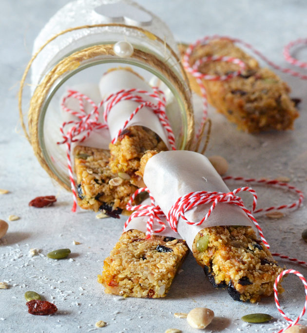 Natale è una piccola pausa sia dai doveri che dalla dieta, dopo gli eccessi di questi giorni, quindi, è necessario tornare alle sane abitudini, facendo anche un pò di dieta. personalmente a me non piace fare un’alimentazione molto restrittiva, mangiando cibi monotoni, quindi cerco sempre di realizzare dei cibi gustosi ma sani. Per i miei spuntini, soprattutto fuori casa, ho preparato queste barrette energetiche, sicuramente con molti meno zuccheri rispetto a quelle che si trovano in vendita. Realizzarle è davvero semplice, ed è anche un ottimo modo per utilizzare la frutta secca, avanzata dalle ultime feste.