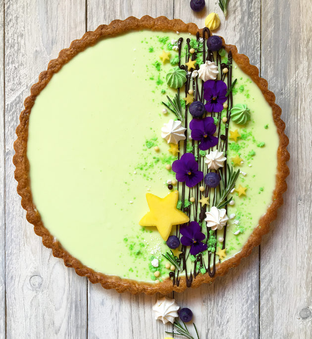 Aggiungete il succo di lime ed eventualmente anche una puntina di colorante verde. Versate nel guscio di frolla e lasciate in frigo a rassodare.