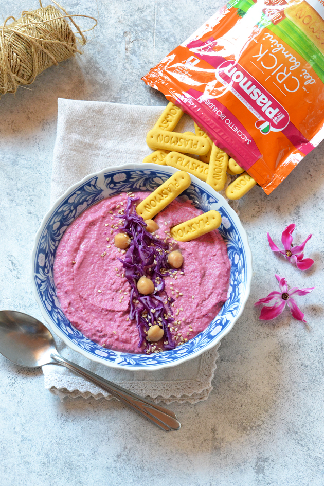 Con questa ricetta facciamo un salto in Medio Oriente, riscoprendo una delle sue ricette più antiche, leggermente rivisitata da me per conferirgli un colore speciale. L’hummus di ceci è una crema, perfetta per essere spalmata sui crostini, resa aromatica dall’aggiunta della salsa tahina, una salsa realizzata dal sesamo. Il limone invece conferisce una nota acidula, riequilibrando tutti i sapori. Prepararlo è davvero facile, potete utilizzare i ceci precotti e se riuscite a reperirla anche la salsa tahina confezionata, se non la trovate, nessun problema, vi lascio la ricetta per prepararla in pochi minuti.