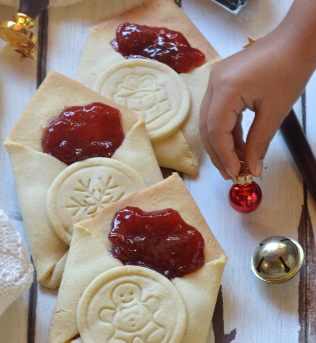 Uno dei momenti più magici del Natale è sicuramente quello in cui i nostri bimbi scrivono la letterina a Babbo Natale, un momento pieno di sogni e di tenerezza. Perché non trasformare la letterina in un gustoso biscotto di frolla alle mandorle e ripieno di marmellata di fragole?