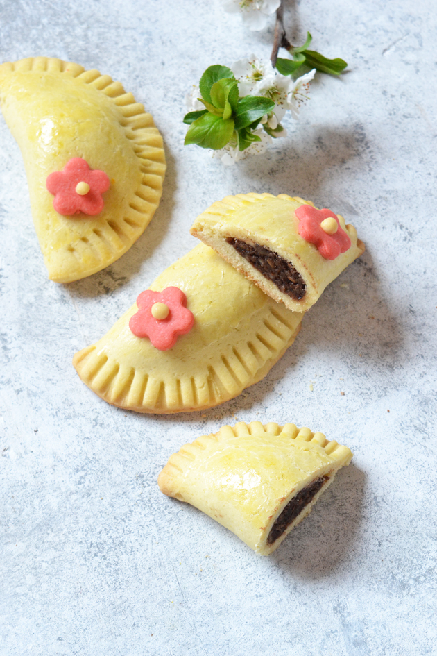 Le nepitelle sono dolci di origine araba che si realizzano in Calabria, soprattutto nella provincia di Catanzaro nel periodo pasquale, il loro nome deriva dal latino nepitedum che vuol dire palpebra, la loro forma infatti richiama quella di una palpebra socchiusa. E’ un dolce ricco di ingredienti, perfettamente equilibrati che danno vita ad un sapore delizioso. La versione originale prevede una frolla preparata con lo strutto, mentre per quanto riguarda l’interno si utilizza il vino cotto. Nella mia versione ho realizzato una frolla con l’olio ed ho sostituito il vino cotto, non semplice da trovare con la marmellata di prugne. Le mie nepitelle sono state assaggiate e approvate da mia suocera, quindi potete essere sicuri di realizzare una versione molto simile all’originale.