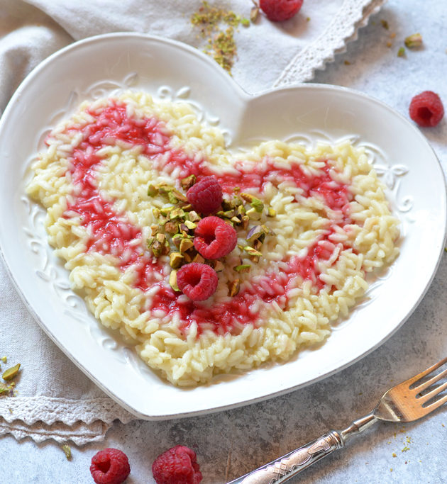 Il risotto al parmigiano con riduzione di lamponi e un primo piatto  goloso e delicato, molto bello visivamente ma di semplice esecuzione. Una ricetta che mi è stata ispirata dalla mia amica Francescaglam, mia collega di blog su 4blogger per caso. Un piatto che richiede poche regole per la sua buona riuscita. Un ottimo riso carnaroli, dei lamponi dolci, una buona tostatura del riso, in modo che non scuocia e rilasci la giusta quantità di amido e un parmigiano stagionato 24 mesi.