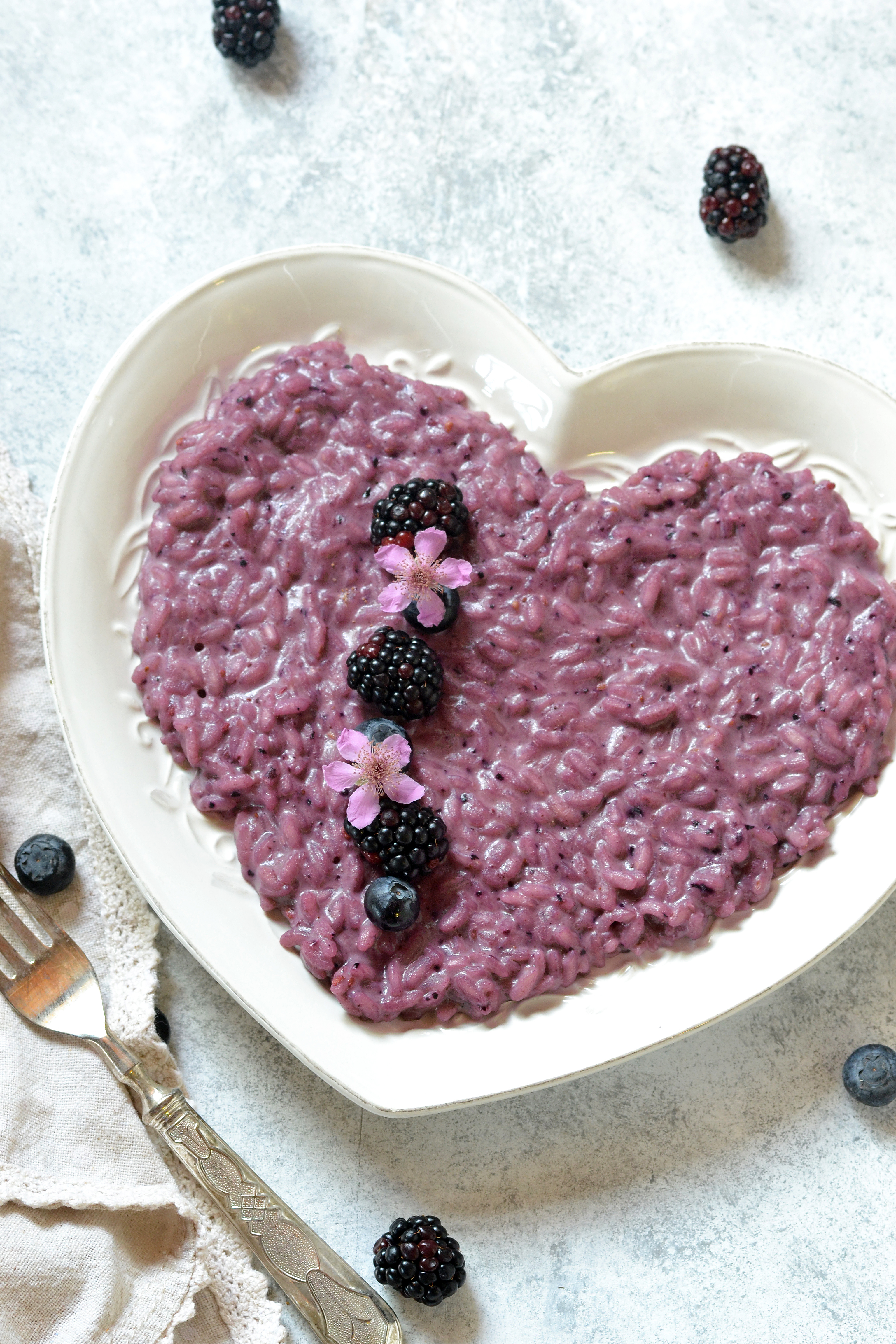 Il risotto è uno di quei piatti che io considero una vera e propria opera d’arte, e in quanto tale lo preparo con tutta la cura possibile. Mi piace variare sempre gli ingredienti e magari provare nuovi accostamenti. Quindi appena ho visto i primi rovi di more in fiore mi si è accesa la lampadina e quindi l’idea di preparare questo risotto con more e mirtilli, delicato e raffinato, reso ancora più avvolgente da un tocco di mascarpone.