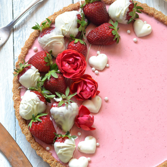 Un guscio croccante con mandorle, avena e datteri racchiude, una deliziosa crema di fragole e panna, dolcificata esclusivamente con sciroppo d’acero. Una fetta di bontà con pochi sensi di colpa. Se siete intolleranti, o vegani potrete sostituire la panna di latte con una vegetale ed il gioco è fatto. Anche le noci possono essere sostituite con pari quantità di mandorle.