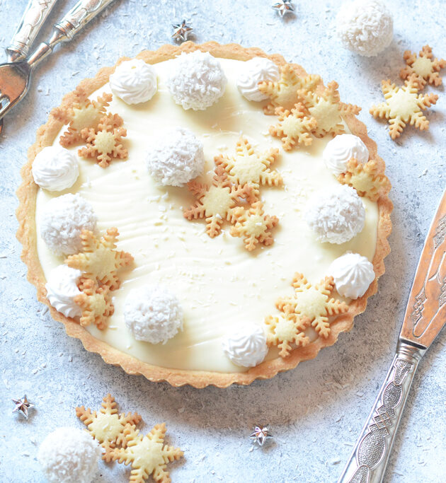 Quando il guscio sarà freddo e la namelaka un pò addensata, assemblate la crostata e lasciatela riposare in frigo per almeno 4 ore.