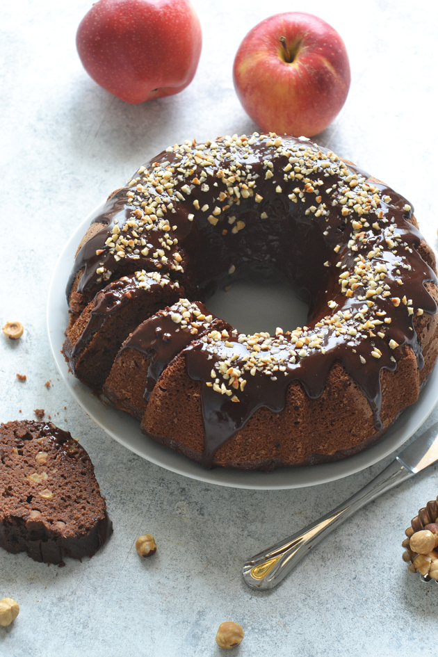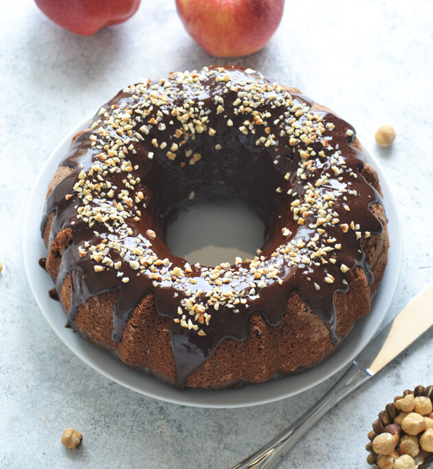 Cosa c’è di più buono di una torta di mele? Semplice, una torta di mele al cioccolato! Questa torta, è la versione al cacao della mia famosa torta di mele invisibili, una ricetta che molti di voi hanno realizzato ed apprezzato. Le mele vengono frullate con l’olio fino a creare una soffice mousse, che conferisce una morbidezza e un profumo incredibile al dolce. Avendola realizzata per il compleanno del mo papà, l’ho resa ancora più speciale, con l’aggiunta delle nocciole e della glassa, ma vi assicuro che è deliziosa anche senza.