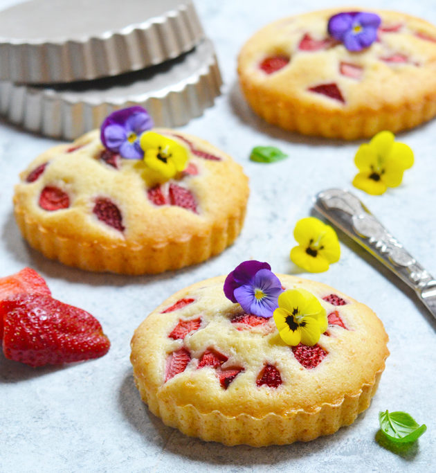 Questo è stato uno dei primi dolci con le fragole che ho preparato quest’anno. Eravamo chiusi in casa in piena pandemia, era pomeriggio e i bimbi volevano qualcosa di buono da mangiare, non avevo tanti ingredienti a disposizione, in dispensa c’era un rimasuglio di farina di mandorle, in frigo giaceva qualcuna delle prime fragole acquistate nell’ultima spesa. Si dice che la fame aguzza l’ingegno e cosi con pochi semplici ingredienti, hanno preso vita delle squisite e profumatissime tortine di fragole, morbidissime e umide al punto giusto. Base perfetta per essere arricchita anche con altra frutta di stagione.